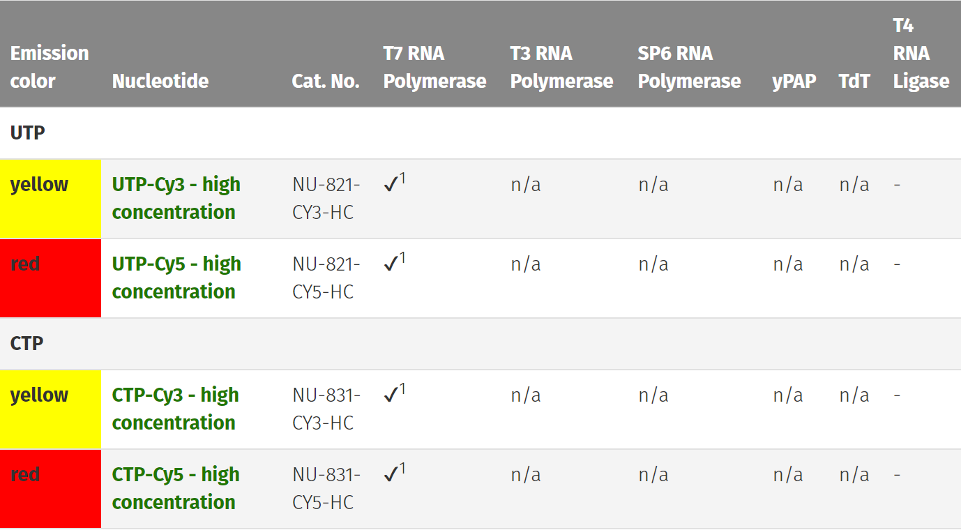 西美杰代理的Jena Bioscience品牌現在能提供用于DNA和RNA非放射標記的濃度為10mM的Cy3-,Cy5- 和濃度為5mM的Biotin- 標記的核苷酸。