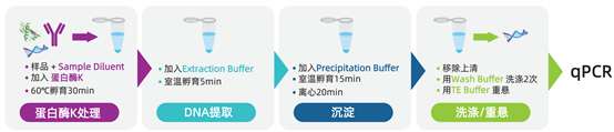 ? All-in-one kit支持從樣品到qPCR的全過(guò)程—試劑盒中包含了DNA提取試劑(試管法或孔板法),AccuRes? PCR體系預混液,引物/探針預混液和DNA標準品