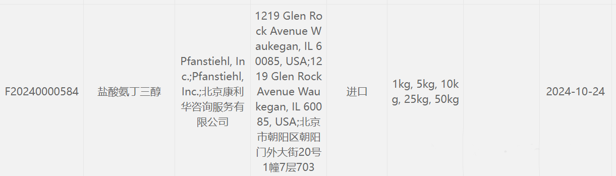 “ 熱烈祝賀Pfanstiehl的注射級鹽酸氨丁三醇Tris HCL(T-154)喜獲CDE登記號F20240000584. 這是Pfanstiehl產(chǎn)品獲得的第16個(gè)CDE登記號!”